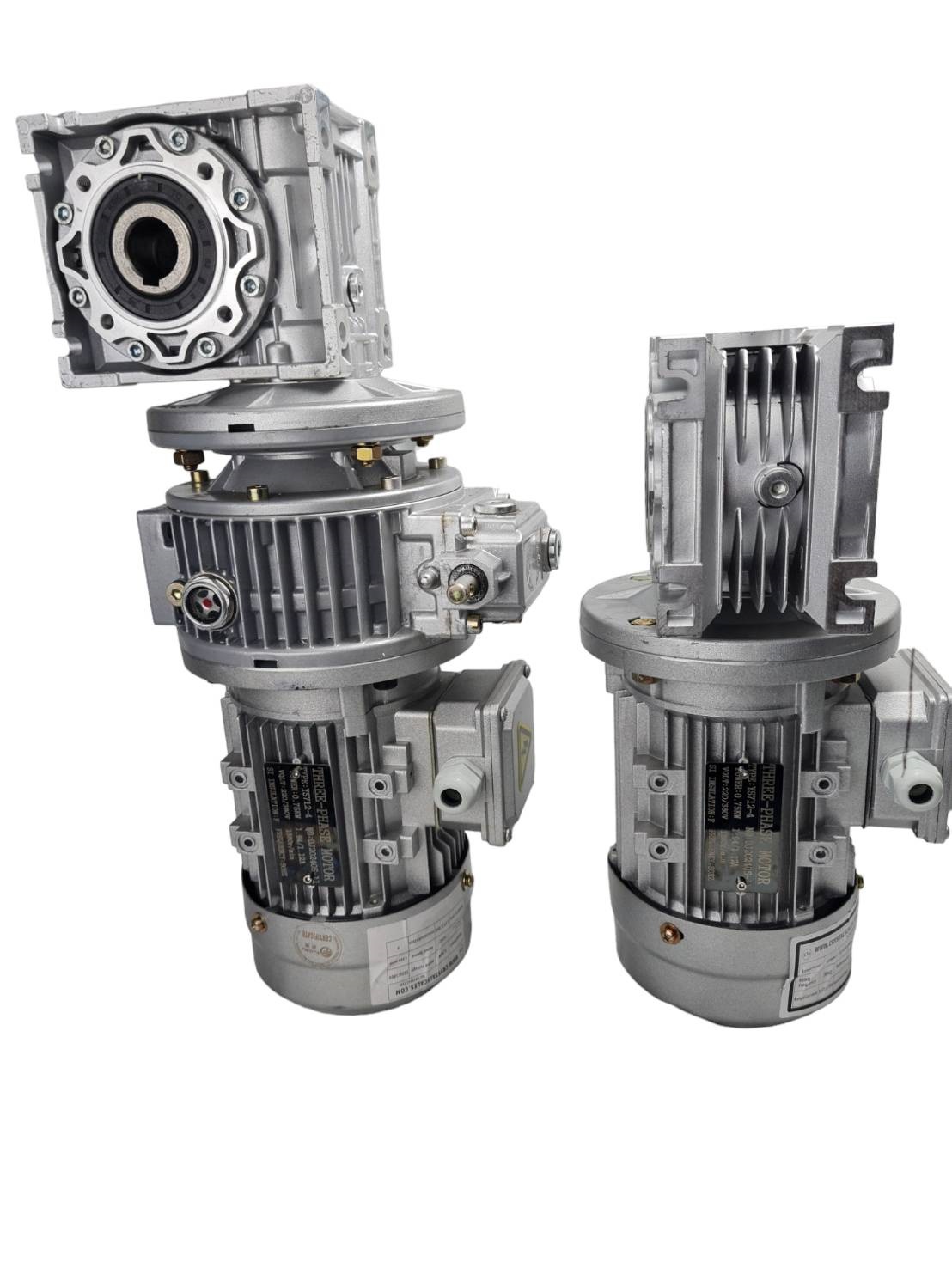 AC Motor Gear 0.75KW/1HP Three Phase 220V/380V with Output Flange NMRV 050, 20:1 and Speed Controller UDL 0.75KW/1HP คุณสมบัติของมอเตอร์เกียร์ มอเตอร์เกียร์ AC ขนาด 0.75KW หรือ 1 แรงม้า เป็นมอเตอร์สามเฟสที่สามารถทำงานได้ทั้งในระบบไฟฟ้า 220V(3 เฟส) และ 380V มีความทนทานและประสิทธิภาพสูง เหมาะสำหรับการใช้งานในอุตสาหกรรมที่ต้องการการขับเคลื่อนที่แม่นยำและเชื่อถือได้